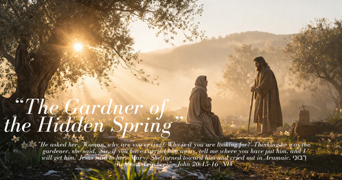 In this sacred גַּן (gan, garden), the transition of the seasons is quietly unfolding. Much like the experience of a northern spring, where the snow lingers on the surface while the earth beneath begins its inevitable thaw, resurrection is already in motion before it is visible to the human eye. The ground may appear cold and finished, yet the life of God pulses in the hidden roots. When Mary turns and sees the figure standing in the mist, her assumption that He is the gardener is a mistake of the eyes but a profound truth of the soul. She stands in the presence of the One who tends the new creation. This Gardener does not panic over the barrenness of the soil or the lingering chill of the air. He works with the patience of eternity, tending to the growth that happens in the secret places of the heart.